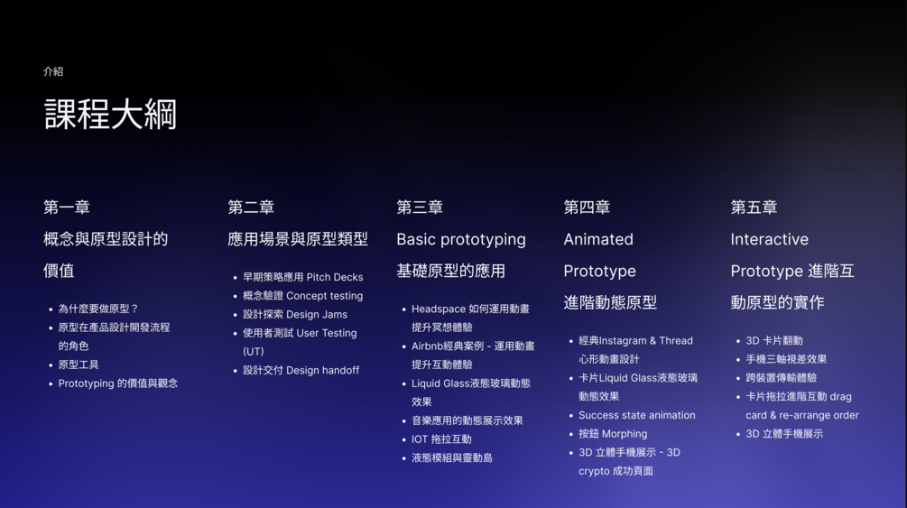 🌟 實戰篇:透過真實案例與角色扮演,實際操作原型設計、互動動畫、AI輔助 prototyping,掌握從設計到程式的完整實踐方法。
